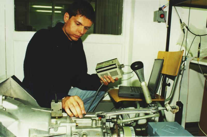 Foto zum Text: In der Pressestelle der TU Chemnitz können Sie honorarfrei ein Foto anfordern (Bildtext: Jan-Olaf Sehm von der Professur für Systemtheorie der TU hält die neue Klassifikatorbox in der Hand, mit der Störgrößen an einem Getriebe schnell erkannt werden können).
