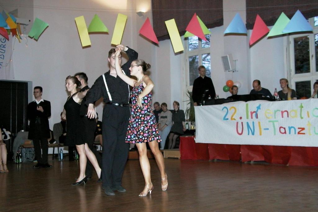 Die Aula der Technischen Universität Clausthal hat in ihrer ehrwürdigen Geschichte viele "Mitternachtsschreie", Oberharzer Folklore, Blas- und Tanzmusik gehört. An diesem Wochenende kam sie in den Genuß lateinamerikanische Rhythmen im Gebälk zu verspüren. Die "Clausthaler Tanzbären" organisierten das 22. Internationale Hochschultanzturnier vom 5. - 8. November. Eingeladen waren alle "Tango-Tiger, Rumba-Ratten, Slowfox-Schnecken, Paso-Panther, und auch das "niedere Volk" der sonstigen Tanzbegeisterten. Rund 90 Paare aus vielen deutschen Hochschulen, sowie einige aus den Niederlanden waren gekommen.