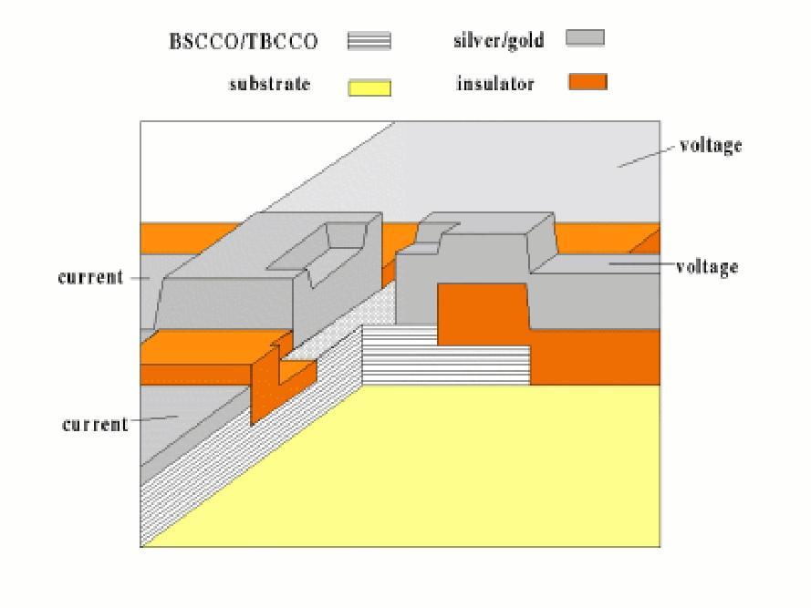 Auch aus diesem Grund kümmern sich der Jenaer Paul Seidel und sein Gruppe am Uni-Institut für Festkörperphysik um den intrinsischen Josephson-Effekt auf atomarer Ebene. Sie konstruierten nun Stapel von schwach gekoppelten Josephson-Systemen in 3x3 Mikrometer großen "Türmchen", die am Jenaer Institut für Angewandte Physik mit Photo- und Elektronenstrahllithographie aus einer dünnschichtigen Grundplatte herausmodelliert wurden. Die Spitzen dieser "Türmchen" erhielten eine nanometerbreite Kerbe, so dass zwei Elektroden entstanden, folglich Strom und Spannung am Josephson-Kontakt sauber getrennt zu messen sind.