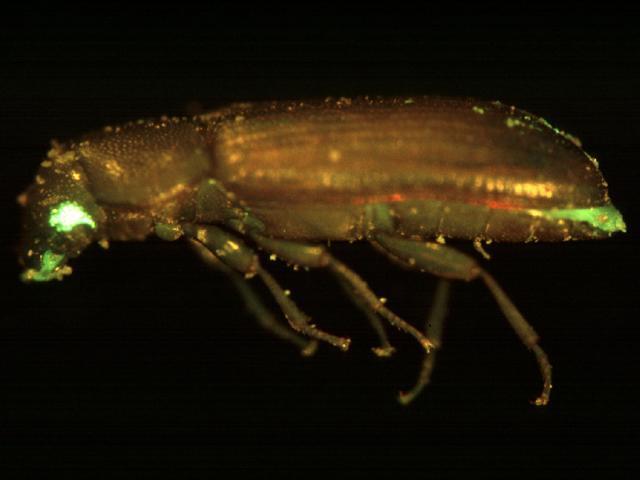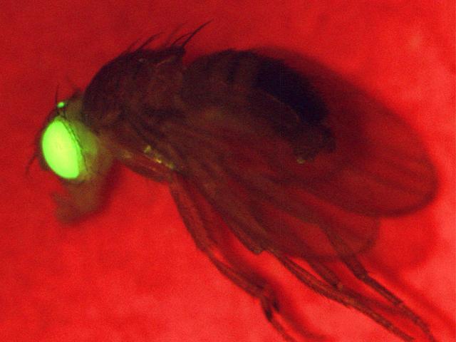 Dem Bayreuther Genetiker Dr. Ernst Wimmer ist es nun in Zusammenarbeit mit Andreas Berghammer und Martin Klingler von der Ludwig-Maximilians-Universität München erstmals gelungen, ein universelles Marker-Gen zu entwickeln, das in allen Insektenarten funktionieren sollte (nature vom 25. November 1999). Wie die Autoren am Beispiel von Taufliege und Mehlkäfer nachweisen konnten, führt der Einbau dieses Marker-Gens dazu, dass die Augen transgener Tiere grün fluoreszieren. Die universelle Eignung dieses Marker-Gens beruht darauf, dass es durch einen regulatorischen Mechanismus aktiviert wird, der im Tierreich durchgehend konserviert ist.