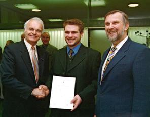 Seit dem Wintersemester 1998/99 werden im Fachbereich Maschinenbau der Hochschule für Technik Karlsruhe (FH) neben dem Diplom- auch ein Bachelor- und ein Masterstudiengang angeboten. Sie führen zu den international anerkannten Graden "Bachelor of Science (BSc)" und "Master of Science (MSc)". In der vergangenen Woche konnte Jörg Ettrich in diesem Fachbereich als erster Absolvent des neuen Masterstudiengangs verabschiedet werden und gehört damit zu den ersten Studierenden, die in Baden-Württemberg diesen Hochschulabschluss erwerben konnten.