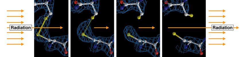 Da sich die Reaktion des Enzyms innerhalb von Mikrosekunden vollzieht, hofften die Wissenschaftler darauf, den Prozess durch eine Serie blitzschneller 'Roentgen-Schnappschuesse' verfolgen zu koennen. Das Ergebnis wies in der Tat auf eine zeitabhaengige Veraenderung hin. Bei genauerer Betrachtung wurde den Forschern jedoch klar, dass sie bei ihrem Versuch, eine enzymatische Reaktion zu verfolgen, erstmals Zeugen einer dreidimensionalen Aufnahme von einem durch Strahlung verursachten Zerfall spezifischer chemischer Bindungen in dem Protein geworden waren. 'Die Beobachtung war verblueffend. Waehrend die Filmserie wie eine simulierte Animation chemischer Prozesse aussieht, wussten wir, dass wir eine direkte experimentelle Observation vor uns hatten - etwas, das niemand zuvor je gesehen hatte', sagt Prof. Sussman.