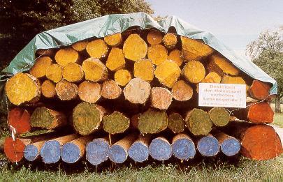 Ein Großteil des in Deutschland erzeugten Nadelschnittholzes wird im Bausektor verwendet. Beim Hausbau muss das Holz für den statisch belasteten Bereich entweder mit chemischen Holzschutzmitteln behandelt oder aber trocken verbaut werden. Holzschutzmittel werden von zahlreichen Bauherren nicht gern gesehen, und die bisherigen Verfahren zur technischen Trocknung von geschnittenem Holz sind energie- und zeitaufwendig. An der Bundesforschungsanstalt für Forst- und Holzwirtschaft (BFH) in Hamburg ist jetzt ein Verfahren getestet worden, entrindetes Nadelstammholz direkt nach dem Schlagen im Wald zu trocknen und anschließend zu Bauholz einzuschneiden.