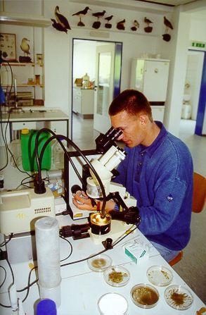 Durch einen Anbau wurde vor zwei Jahren Raum geschaffen, um auch gegenläufige Interessen befriedigen zu können, und außerdem die veraltete Geräteausstattung auf den neuesten Stand gebracht. Zum Beispiel die Meerwasseranlage, notwendig, um die gesammelten Proben aus dem Watt adäquat lagern zu können. Im neu ausgehobenen Keller stehen acht 650 Liter Wasser fassende Tanks, durch die das mit künstlichen Meersalzen angereicherte Wasser immer wieder gepumpt, gereinigt und auf eine der Nordsee entsprechende Temperatur gebracht wird. Die alte Anlage, in der Garage auf dem Hof untergebracht, konnte vor allem im Sommer das Wasser nicht genug herunterkühlen, was Kleintieren und Pflanzen nicht eben gut tat. Auch ein Nasslabor hat den Komfort wesentlich erhöht: So müssen jetzt die schlammspritzenden Eimer mit den Proben nicht mehr durch das ganze Haus geschleppt werden, sondern können bequem im gekachelten Raum aufbereitet werden.