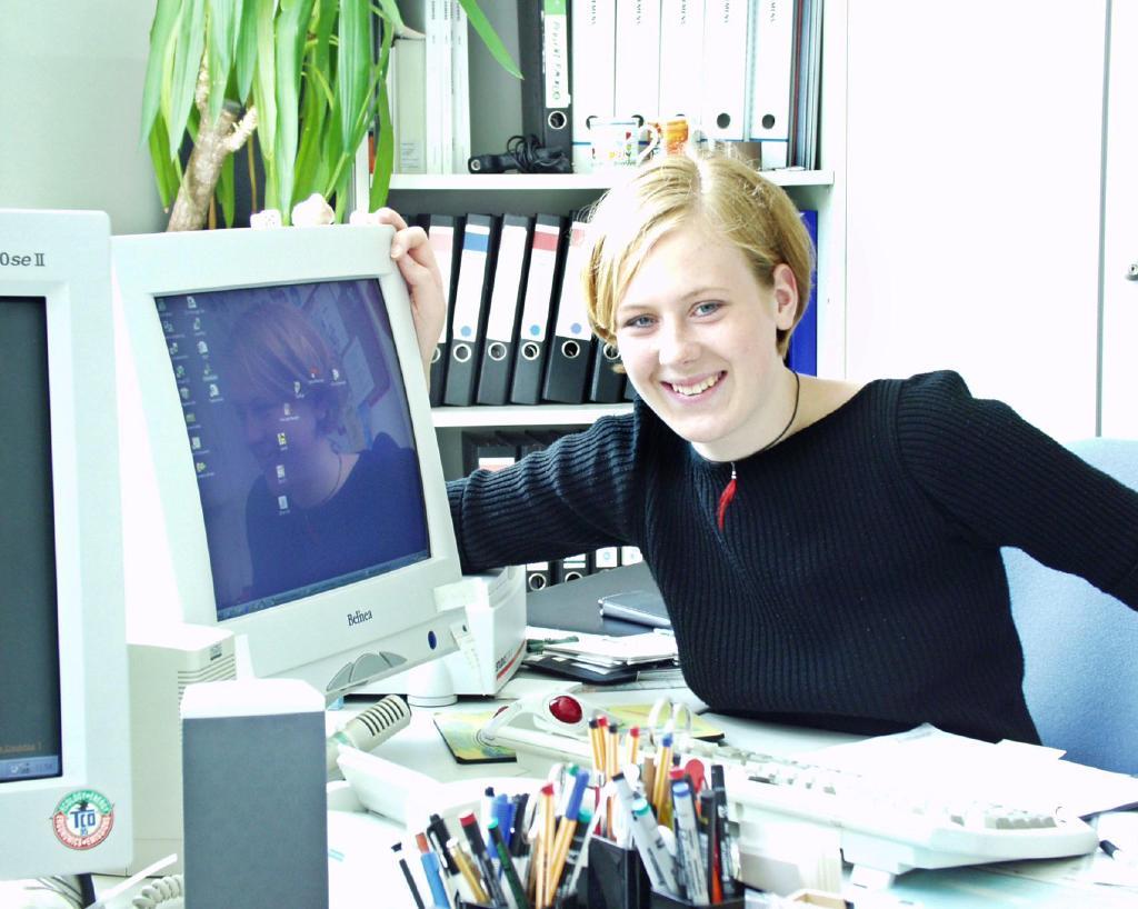 Für Kerstin Tenbrock heißt es ab jetzt, sich täglich mit Datenbanken, Computerprogrammen und Informationsnetzwerken auseinander zu setzen. Bereits ab dem zweiten Lehrjahr soll sie selbstständig Rechnernetzwerke pflegen, neue Rechner installieren und programmieren können und die Internet-Informationen des Fachbereiches aktualisieren. Dafür hat Kerstin Tenbrock ihre schulische Laufbahn unterbrochen, obwohl sie die Klasse 10 mit besten Noten abgeschlossen hat. Sie ist davon überzeugt, "dass ich jetzt erst mal praktische Arbeit tun will. Das Abitur machen und studieren kann ich später immer noch." Die Hobbies der kommenden Fachinformatikerin haben, zumindest sprachlich, viel mit dem Beruf zu tun: Tagsüber surft sie im Internet, nachmittags geht sie bei der Deutschen Lebens-Rettungs-Gesellschaft schwimmen. Kerstin Tenbrock ist Trägerin des silbernen DLRG-Abzeichens. Und wenn während der Arbeit ihre Finger auf der Tastatur tanzen, dann tun dies ihre Füße am Abend auf dem Parkett.