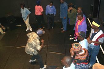 Erstmals trat im Theaterprojektraum der Fachhochschule Frankfurt am Main (FH FFM) eine Gruppe aus Kamerun auf. Die 19 Schauspielerinnen und Schauspieler der "Mountain Mourners" gaben das Stück "Der zweite Tod und das Begräbnis der Königin Victoria."