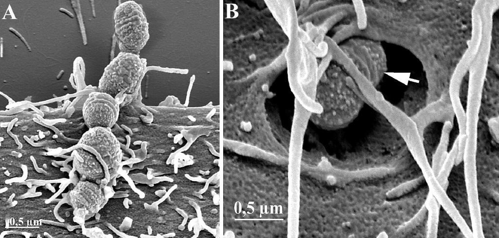 Die GBF-Forscher fanden heraus, dass auch bei diesen Infektionen der Rachenschleimhäute Antikörper gegen Herz-Myosin gebildet werden. Mit elektronenmikroskopischen Aufnahmen haben sie zudem belegt, dass die Bakterien in menschliche Zellen eindringen können.
