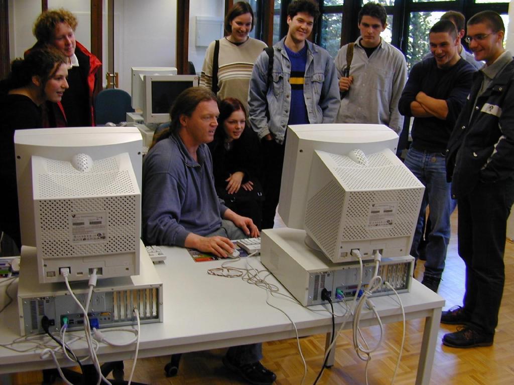 Der Rechnerpool ist mit 100 Mbit/s an den Hochleistungsbackbone der Universität angeschlossen und über diesen mit dem Gigabit-Wissenschaftsnetz des DFN und damit dem weltweiten Internet verbunden. Damit stehen den Studierenden schon heute Übertragungsgeschwindigkeiten zur Verfügung, die allgemein erst in einigen Jahren zum Standard gehören werden - ein wichtiges Argument für eine zukunftsorientiere Ausbildung.