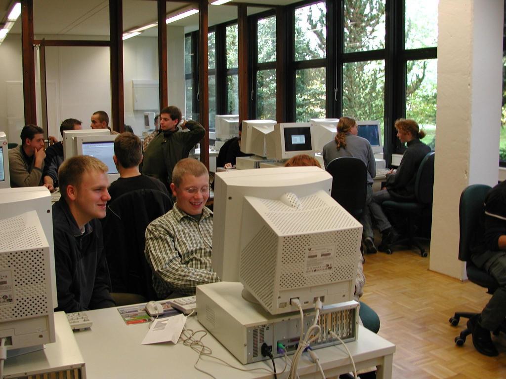 Es ist soweit - auch im Nordbereich der Georg-August-Universität Göttingen sind die Studierenden jetzt online. Am 24.Oktober 2000, zu Beginn des WS00/01, wird an der Fakultät für Forstwissenschaften und Waldökologie der Universität Göttingen, in Anwesenheit des Präsidenten der Universität Göttingen Prof. Dr. Kern, der Vizepräsidentin Frau Prof. Dr. Lipp, dem Geschäftsführer der GWDG Prof. Dr. Schneider, dem Leiter der SUB Prof. Dr. Mittler und der Dekanin der Fakultät für Forstwissenschaften und Waldökologie Frau Prof. Dr. Polle, ein Internet-Café eröffnet. Dies Internet-Café ist in Zusammenarbeit mit der GWDG und der Internet-Hotline der Universität Göttingen entstanden und an mehr als 20 Studierenden-Rechnern kann weltweit gesurft, gemailt und mit Hilfe moderner Text- und Tabellenkalkulationsprogramme wissenschaftlich gearbeitet werden.