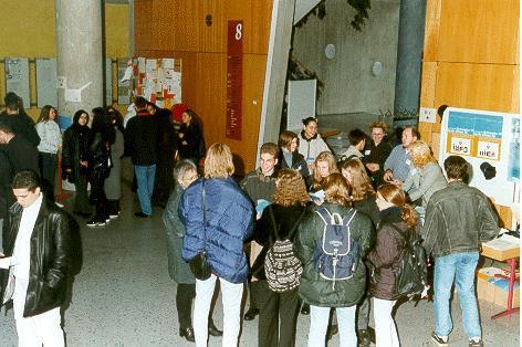 Zum zehnten Tag der offenen Tür lädt die Fachhochschule Frankfurt am Main - University of Applied Sciences (FH FFM) für den achten November 2000 ein. Alle Schulen, auch einzelne Schülerinnen und Schüler oder interessierte Eltern können an diesem Tag die FH erkunden. "Da wir einen lebendigen Eindruck unserer Hochschule vermitteln möchten, wird der normale Lehrbetrieb stattfinden", sagt Präsident Rolf Kessler. "Und um zu zeigen, dass bei uns nicht nur das Studieren, sondern auch das Leben als Studierende Spaß macht, haben wir natürlich die Mensa und all unsere Cafés ("Hohlblock", "Profitratte", "Kurzschlusz" sowie das - über die FH hinaus bekannte - "BCN-Café") geöffnet".