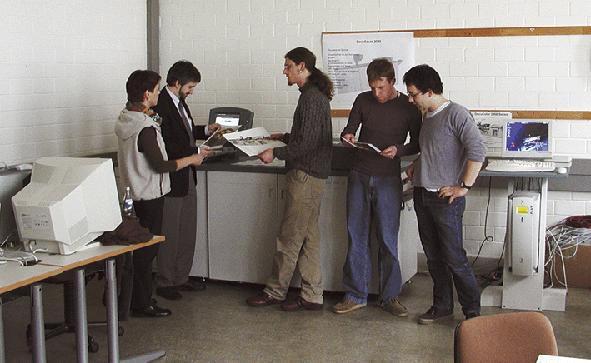 Das erste Druckprodukt wurde bereits zum Start des Sommersemesters 2001 auf der Maschine erstellt. Udo Henneberg und Christian Scherschel vom Unabhängigen Studierendenausschusses (UStA) druckten auf der Xerox-Maschine die vierfarbige Studentenzeitschrift "Zustände". Die Xerox DocuColor 2045 Digitaldruckmaschine funktioniert nach dem elektrofotografischen Prinzip. Bei einer Auflösung von 600 dpi und 256 Graustufen pro Pixel druckt sie 45 DIN A4 Seiten pro Minute. Automatischer Duplex-Druck ist möglich. Papiere bis 280 g/m² und Formate bis DIN A3+ sind kein Problem. Neben der Druckmaschine wurde ein Server auf Windows NT-Basis eingerichtet, der den Fiery EX 2000 RIP beherbergt. Ein zur Maschine gehörendes X-Rite-Scan-Densitometer dient zum Einlesen von Stufenkeilen für die Linearisierung der Druckausgabe.