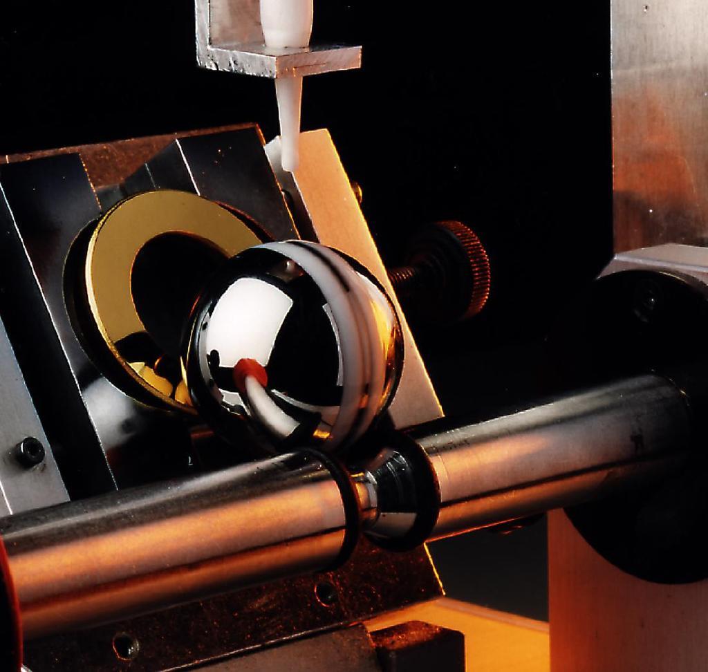 Bei diesem Verfahren hört der Verschleiß auf den Namen »Kubikmeter pro Newtonmeter«, also: Volumen des abgetragenen Materials pro aufgewendeter Verschleißarbeit. Diese mechanische Arbeit verrichtet ein Kalottenschliffgerät, das als »Calo Tester« inzwischen vom Braunschweiger Unternehmen BAQ GmbH vermarktet wird. Eine Kugel von drei Zentimetern Durchmesser rotiert auf der Lackfläche, wobei die eigentliche Arbeit von einem Schleifpulver verrichtet wird. »Genau auf das Material kommt es an«, verrät Bethke. »Die Kugel besteht aus einem ähnlichen Kunststoff wie die Bürsten in Waschanlagen und das Pulver muss Staub oder Schmutz auf dem Auto möglichst gut nachahmen. Dafür verwenden wir Aluminiumoxid einer bestimmten Korngröße und Kantigkeit.« Also kratzt die Kugel nicht nur herum, sondern schmirgelt eine winzige kreisrunde Delle in den Lack. Nach drei Minuten ist die eingeschliffene Kalotte typischerweise weniger als einen Millimeter breit. Der genaue Wert lässt sich unter dem Mikroskop ausmessen. Daraus errechnet sich das Volumen des verloren gegangenen Lacks. Je weniger Abrieb, desto kratzfester war er.