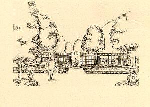 Das Ambiente: Bei der Planung wurde Wert darauf gelegt, daß sich der Garten sowohl in die Leipziger Tradition der Gartenkunst eingliedert, als auch den historischen Vorbildern entspricht, soweit sie geortet werden konnten. So laden Holz- und Steinbänke zum Verweilen und zum Studium ein, eine Pergola trennt den historischen von dem aktuellen Teil, und eine sprudelnde Wasserachse und ein Springbrunnen vermitteln Erinnerungen an mediterrane Gärten.