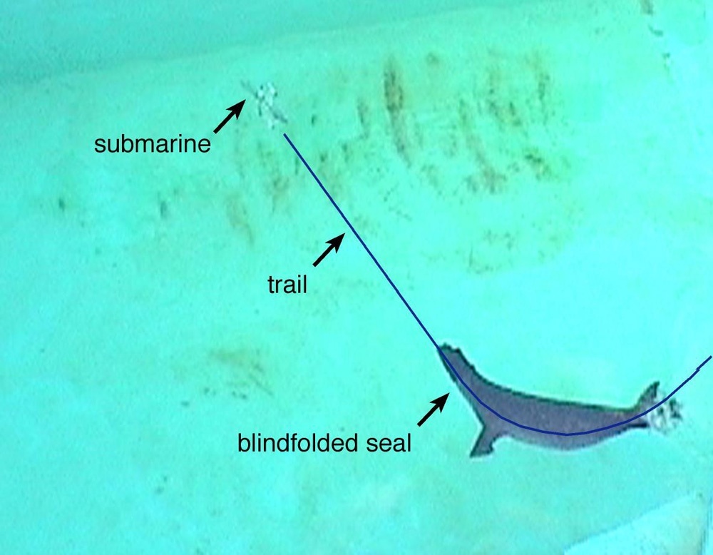 Der Nachweis dieser Fähigkeit gelang den Forschern in Verhaltensexperimenten mit zwei Seehunden. Ein autonom laufendes Mini-U-Boot, das in ihrer Nähe gestartet wurde, erzeugte hydrodynamische Spuren, sowohl gerade als auch welche mit Kurven. "Wir stationierten die Versuchstiere zunächst in einem Ring über Wasser. Damit sie das U-Boot weder sehen noch hören konnten, setzten wir ihnen undurchsichtige Strumpfmasken und Kopfhörer auf", erläutert Dr. Dehnhardt den Versuchsablauf. Nachdem das U-Boot einige Sekunden lang auf einem nicht vorhersehbaren Kurs gefahren war, schaltete es sich ab und trieb lautlos im Wasser. Das Absetzen der Kopfhörer war für die Seehunde das Startsignal. Immer noch mit der Maske geblendet, verließen sie den Stationierungsring, tauchten langsam ab und suchten nach der Spur des U-Boots. Sobald sie sie kreuzten, zeigte ein deutlicher Richtungswechsel in ihrem Schwimmverhalten, dass sie die Spur gefunden hatten und ihr jetzt folgten. "Analysen von Video-Aufnahmen bestätigen, dass die Tiere die Richtung des U-Boots stets richtig bestimmten und jede kleine Kursänderung genau verfolgten", so Dehnhardt. "Lief dagegen der Motor des U-Boots noch, wenn den Robben die Kopfhörer abgenommen wurden, orientierten sie sich am Klang und schwammen direkt auf die Schallquelle zu", erklärt Zoologie-Professor Bleckmann, der die Bonner Abteilung für vergleichende Neurobiologie leitet. "Die Orientierung erfolgt in der Realität multimodal, also mit den Ohren, der Nase und den Vibrissen."
