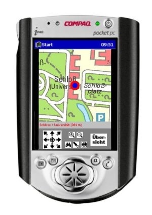 Im Rahmen einer Diplomarbeit am Institut für Geoinformatik der Universität Münster entwickelt und testet Kai Jens Altgott zur Zeit den Prototypen eines mobilen Stadtinformationssystems (MoSIS) für das Stadtgebiet Münsters als praktisches Beispiel für die Umsetzung solcher standortbezogenen Dienste.