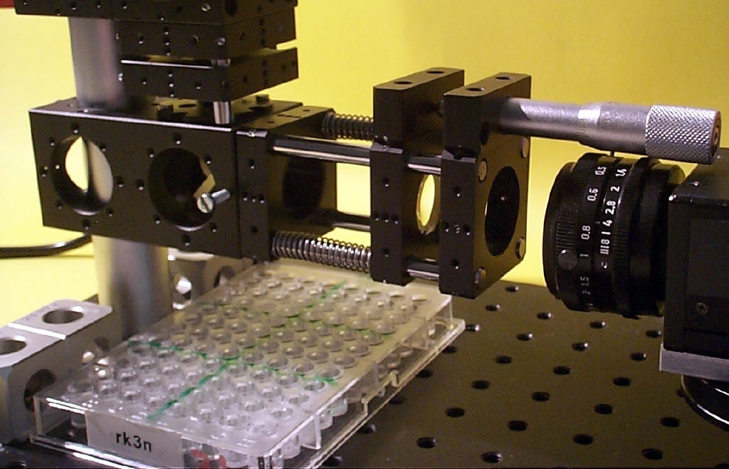 »Mit den bisher in der Medizintechnik eingesetzten Verfahren lassen sich die Füllstände der Proben nicht genau genug kontrollieren«, erläutert Sawaryn. »Hier setzt unser optisches Messverfahren an, das mit einer CCD-Kamera arbeitet.« Die Wissenschaftler beleuchten von oben jede Probe auf der Platte mit einem parallelen Lichtstrahl. Dieser wird an der gewölbten Oberfläche der Flüssigkeit wie in einem Parabolspiegel reflektiert und gebündelt. Die Abbildungsoptik der Kamera projiziert den Lichtfleck auf den CCD-Chip wie auf eine Mattscheibe. Die Optik regelt so lange nach, bis der Fleck scharf abgebildet wird. Das elektrische Signal hierfür entspricht letztlich dem Füllstand der jeweiligen Probe.