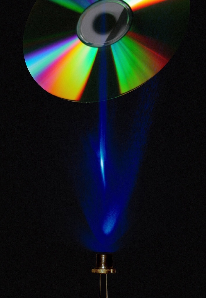 Den gesamten »Fliegenden Holländer« hören, ohne die CD zu wechseln, das Filmopus »Lawrence of Arabia« auf nur einer Digital Vesatile Disk (DVD) aufnehmen - blaue Laser sollen es künftig möglich machen. Denn mit ihrer Hilfe können deutlich mehr Daten als bisher auf CD und DVD gespeichert werden. Gegenüber den herkömmlichen roten Diodenlasern haben blaue einen entscheidenden Vorteil: Sie strahlen Licht mit einer deutlich kürzeren Wellenlänge aus. Deshalb lässt es sich besser bündeln und die Informationen können dichter geschrieben werden.
