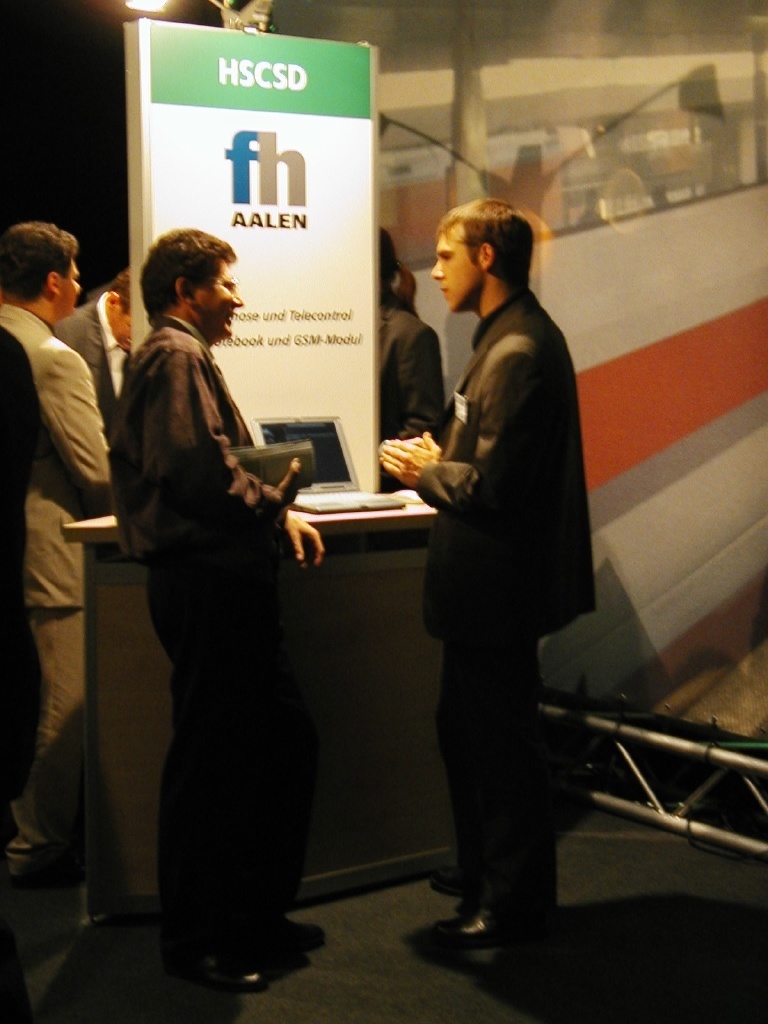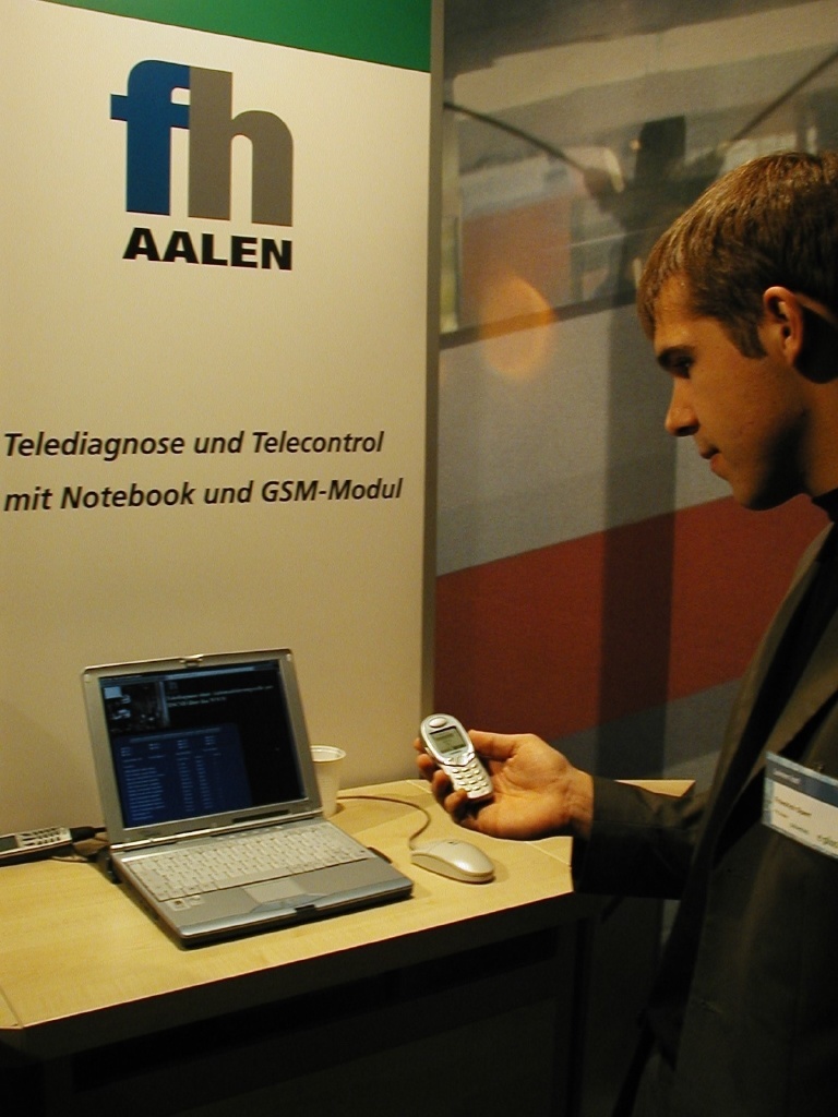 Derzeit sind Prof. Dr. Uwe Berger, Dipl. Ingenieur Martin Österle und Friedrich Sperr von der FH Aalen mit Siemens und E-Plus in Deutschland unterwegs, um die Fernüberwachung und -wartung einer Maschine an der FH Aalen mittels Handy vorzuführen.