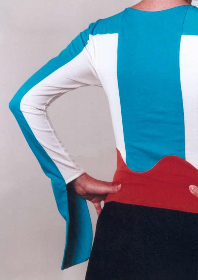 "Süße" Klamotten, vor allem T-Shirts, hat die Studentin im Fachgebiet Textil- und Flächen-Design Sabine Müller-Köllges von der Kunsthochschule Berlin-Weißensee (KHB) in ihrem Projekt "Riegelware" fabriziert. Für die teilweise im Siebdruck gestalteten Kleidungsstücke nahm die Studentin das Design der Verpackungen von Schokoriegeln als Anregung. Die charakteristischen Formen oder Buchstaben vergrößerte und verfremdete sie und erzielte so neue Musterungen, die die ursprüngliche Verpackung noch erkennen lassen. Dabei widmete sie vor allem der Schnittführung Aufmerksamkeit. Die Musterungen sind so angelegt, dass die Formen von verschiedenen Seiten aus betrachtet stets eine Einheit ergeben.