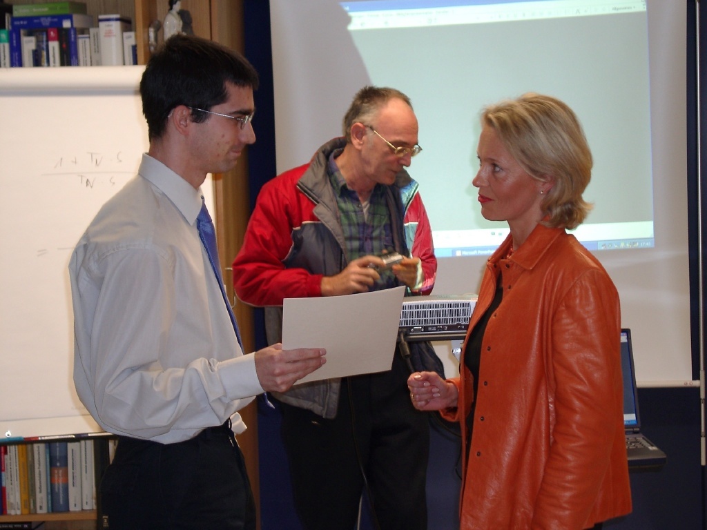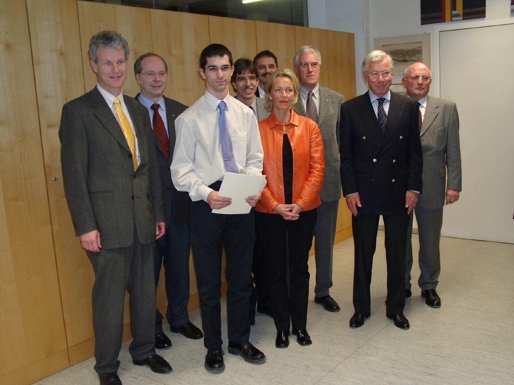 Der mit 1000 EuroEuro dotierte Schuhbauer-Preis wurde vom Rotary-Club Aalen-Heidenheim ins Leben gerufen. Er ist dem Gedenken an Hans-Georg Schuhbauer verpflichtet, der von SHW kommend ab 1984 Technischer Geschäftsführer bei Alfing-Kessler war. Dort hat Schuhbauer, Ingenieur mit Leib und Seele, die Drehfrästechnologie eingeführt und die Gesenkschmiede modernisiert, dabei hielt er stets engen Kontakt zu der jungen Ingenieurgeneration. Von einem Glücksfall für die FH Aalen sprach denn auch der langjährige Dekan des Fachbereichs Maschinenbau, Prof. Dr. Herbert Bauer, rückblickend auf die Kooperationen zwischen der Hochschule und den Alfing-Kessler Werken. Nach dem Ableben von Schuhbauer verzichtete die Familie auf Kränze und Grabbeilagen und bat stattdessen um Spenden für den Rotary-Hilfe-Verein. Dieser entschied sich, die eingegangenen Spenden für die Verleihung eines Preises zu verwenden, der jährlich Diplomarbeiten von hoher technischer Qualität und praktischer Relevanz im Bereich des Maschinenbaus der FH Aalen auszeichnen soll, - eben des Schuhbauer-Preises. Ihn übergab Kirsten Dolderer, Tochter von Hans-Georg Schuhbauer, im Beisein von Dr. Alexis Bömcke und Karl Georg Dengler von den Alfing-Kessler Werken, sowie Veit Reinhart und Willi Popp vom Rotary-Club Aalen-Heidenheim im Rektorat der FH Aalen an den ersten Preisträger, Alexander Fuchs, der sich sehr herzlich für die Auszeichnung bedankte.