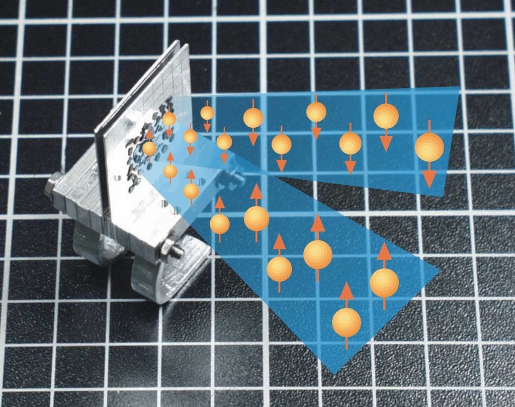 Für die Bildung von Cooper-Paaren in Hochtemperatursupraleitern bedarf es einer stärkeren Kraft, deren Ursprung auch nach fast 15 Jahren noch immer umstritten ist. Auf der Suche danach untersuchten die Max-Planck-Wissenschaftler und ihre Partner den Hochtemperatursupraleiter Tl2Ba2CuO6 mit Neutronenstrahlen. Die Neutronenstreuung ist eine Technik, die analog zur Streuung von Lichtstrahlen funktioniert. Ähnlich wie gestreute Lichtstrahlen Objekte für das menschliche Auge sichtbar machen, können aus der Streuung von Neutronenstrahlen detaillierte Daten über die Beschaffenheit von Materialien gewonnen werden. Doch anders als Licht dringen Neutronen tief ins Innere eines Materials vor, sodass Informationen nicht nur über die Oberfläche, sondern auch über das Gesamtvolumen verfügbar werden. Neutronen haben einen Eigendrehimpuls, den so genannten "Spin", und damit ein magnetisches Moment. Sie verhalten sich deshalb wie winzige Stabmagnete. Das selbe gilt für die Elektronen innerhalb eines Festkörpers - auch sie besitzen einen Spin. Werden zwei Stabmagnete nebeneinander gehalten, stoßen sie sich ab oder ziehen sich an, je nachdem wie sie zueinander orientiert sind. Dasselbe passiert mit den Neutronen und Elektronen innerhalb eines Festkörpers: Durch ihre Wechselwirkung kehrt sich der Neutronenspin um und der einfallende Neutronenstrahl wird entsprechend abgelenkt, was gemessen und ausgewertet werden kann (s. Abb.).
