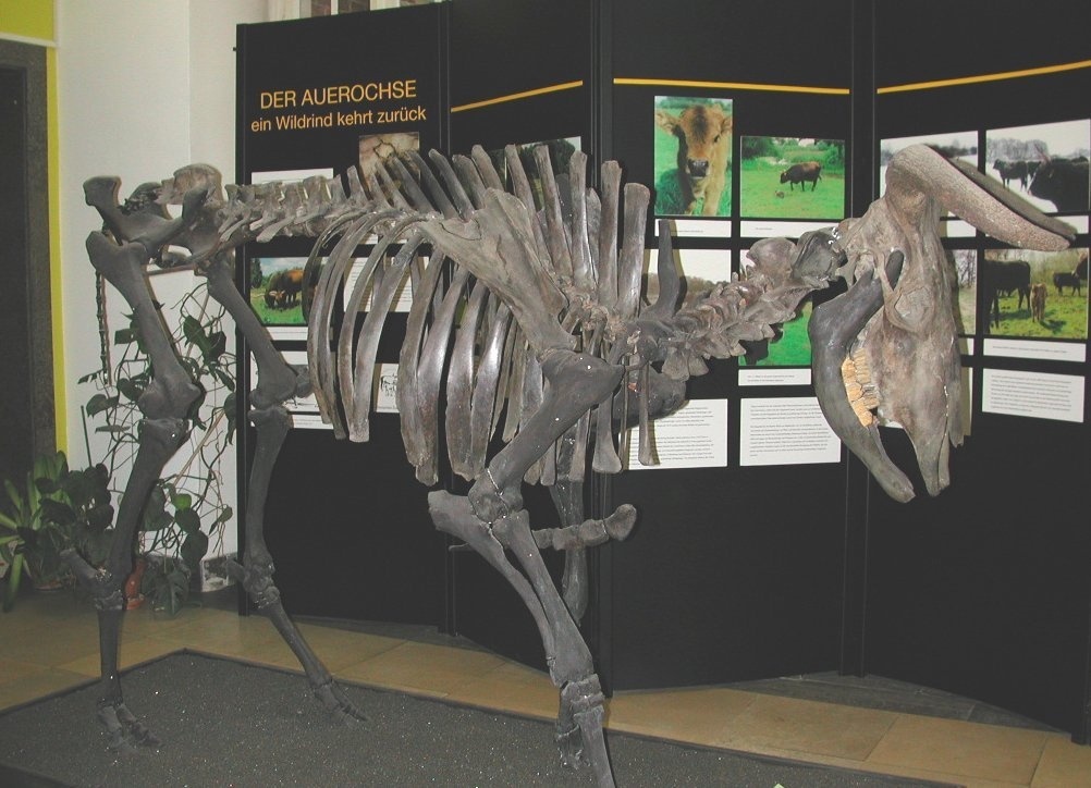 Im Eiszeitsaal des Geologischen Museums an der Pferdegasse 3 wird das ausgestellte Skelett eines Auerochsen durch etwa 20 Großfotos und Texttafeln ergänzt. Diese spannen einen Bogen von den Höhlenmalereien eiszeitlicher Jäger über das "Heckrind-Projekt" vor rund 80 Jahren bis zum heutigen Einsatz der robusten Wildrinder in der Landschaftspflege. Grundlage des Projekts der Zoodirektoren Heinz und Lutz Heck war ihre Idee, dass eine Tierart so lange nicht endgültig ausgestorben ist, wie ihre Gene in Nachfolgern überleben.
