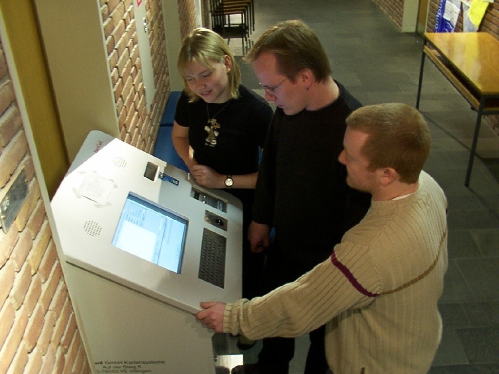 Die auf dem Campus aufgestellten Selbstbedienungsterminals verfügen über Geldkarten - Chip Lesegeräte und ermöglichen einen PIN - gesicherten Zugriff auf Bereiche der Studien- und Prüfungsorganisation. In einem ersten Schritt werden folgende Funktionen realisiert: Rückmeldung, Zahlungsfunktion in der Mensa, Bescheinigungsausdruck, Ausweisaktualisierung, Adressänderungen, Ausleihe in der Bibliothek, Prüfungsanmeldung, Rücktritt von Prüfungen und der Ausdruck von Notenlisten. Geplant ist die Nutzung der Karte zur Abstimmung bei Hochschulwahlen, sowie deren Nutzung als Kopierkarte.