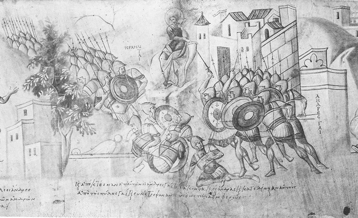 Ein freilich nur fragmentarisch erhaltener Schatz aus der Bibliothek des Vatikans ist der sogenannte "Josua-Rotulus". Er entstand zwischen 955 und 975 in Konstantinopel und ist ein Spitzenprodukt der byzantinischen Buchkunst: Die Illustrationen aus dem biblischen Buch Josua sind in feinster Grisaille-Technik ausgeführt und bebildern in 27 Szenen die Geschichte der Landnahme der Israeliten in Kanaan. Auch äußerlich ist dieses "Buch" außergewöhnlich: Es hat die "klassische" antike Form einer Buchrolle (lat. rotulus) im Querformat.