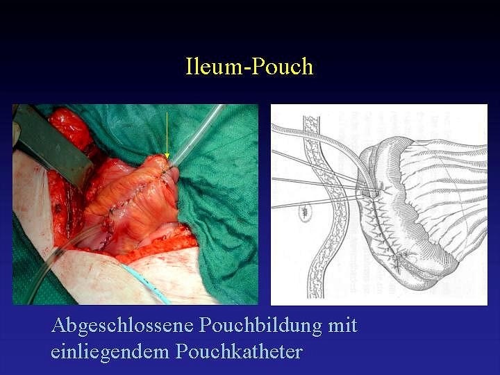Die für diese Patienten optimale Variante ist die Schaffung einer Ersatzblase aus Darmanteilen, die direkt an die Harnröhre angeschlossen wird. Damit kann der Patient weiterhin normal zur Toilette gehen und auf gewohntem Weg Harn ablassen. Dieses Verfahren wird Neoblase genannt und so oft wie möglich eingesetzt. Allerdings: Frauen, die über ein ande-res Schließmuskelsystem als Männer verfügen, profitieren von der Methode meist ebenso wenig wie Patienten, die im Bauchraum voroperiert sind (Narbenbildung).