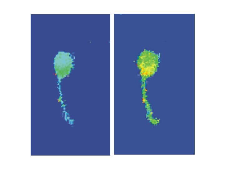 Die Riechzellen in der Riechschleimhaut sind hochgradig spezialisierte Duftsensoren: Sie ragen mit ihren Fortsätzen antennenartig in die Nasenhöhle und können dort Tausende verschiedener Geruchsmoleküle identifizieren und unterscheiden. Bisher gingen die Forscher davon aus, dass Duftstoffe an spezielle Rezeptoreiweiße andocken und eine biochemische Reaktionskette auslösen, die die Zelle immer erregt. Am Ende dieser Signalkaskade fließt Calcium aus dem Nasenschleim durch die Zellmembran und erhöht die Calciumkonzentration in der Zelle. Indem die Bochumer Forscher die Aktivität der Riechzellen sichtbar machten, fanden sie nun einen zweiten, hemmenden Signalweg.