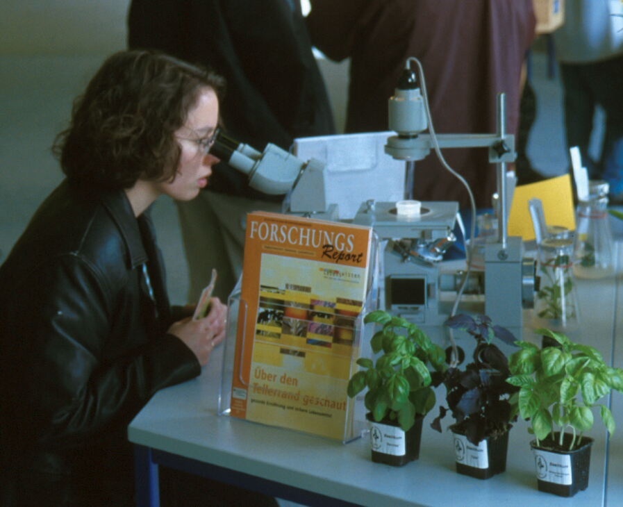 Unter dem Mikroskop werden kleine Florfliegenlarven zu furchterregenden Blattlausfressern, versteckt lebende Vorratsschädlinge verraten sich durch ihre Schmatzgeräusche, und staunende Besucher haben die Qual der Wahl, sich zuerst über Pilzgifte im Getreide, sekundäre Pflanzenstoffe oder das aktuelle BSE-Geschehen zu informieren. Am 11. März 2002 eröffnet Staatssekretär Alexander Müller vom Bundesverbraucherministerium (BMVEL) zusammen mit dem Präsidenten des Senats der Bundesforschungsanstalten, Dr. Meinolf Lindhauer, im Bonner Wissenschaftszentrum die Wanderausstellung "Über den Tellerrand geschaut - gesunde Ernährung und sichere Lebensmittel".
