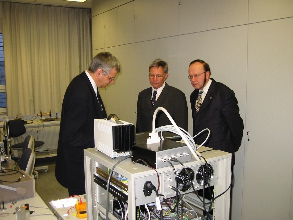 Dr. Kurzs Besuch galt in erster Linie der Optik. In den Forschungslaboratorien der Optoelektronik als auch der Augenoptik wollte er sich einen Eindruck vom aktuellen Stand der Forschung auf dem Gebiet der Optik verschaffen. Mit großem Interesse folgte er daher den Ausführungen von Prof. Dr. Thomas Hellmuth über derzeit sich am Laufen befindliche Forschungsvorhaben an der FH. Für deren Qualität und Bedeutung für die Region war Dr. Kurz dann auch voller Lob und Anerkennung.