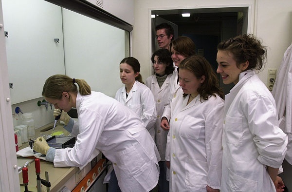 Rund 700 Schüler und Lehrer absolvierten im letzten Jahr ein gentechnisches Praktikum im Forschungszentrum Karlsruhe. Nachdem Ausstattung und Betrieb des gentechnischen Labors nun von der Helmholtz-Gemeinschaft mit rund 430 000 Euro gefördert werden, soll die Teilnehmerzahl im Jahr 2003 noch einmal deutlich erhöht werden. Denn die Nachfrage ist groß: Die Wartelisten für die Praktikumsplätze sind lang und füllen bereits den Zeitraum bis zu den Sommerferien.