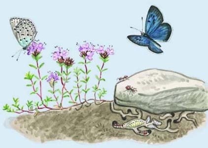 Kommen solche Ameisen vorbei, dann gelingt es den Raupen, sich ihnen gegenüber als "verlorene Ameisenbrut" auszuweisen. Dank dieser Täuschung werden sie von den Ameisen aufgenommen und in deren Kolonie getragen. Je nach Schmetterlingsart werden die Raupen dort entweder von den Ameisen gefüttert - und zwar sogar besser als deren eigener Nachwuchs - oder aber sie betätigen sich als Räuber und fressen die Brut ihrer Gastgeber.