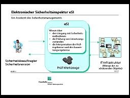 "eSI" soll nicht nur den IT-Sicherheitsbeauftragten in Unternehmen und Behörden das Tagesgeschäft leichter machen, sondern überhaupt erst einmal eine systematische und umfassende Sicherheitsprüfung erlauben. Die Software überprüfe zuverlässig, so Projektleiter Heinz Sarbinowski, welche der bisher nur in Handbüchern aufgelisteten IT-Sicherheitsmaßnahmen tatsächlich in Netzwerken und Computersystemen implementiert sind. Sarbinowski wünscht sich bei seiner Präsentation insbesondere Feed-Back aus professionellen Anwenderkreisen, um deren Anregungen noch bis zum Projektende im Dezember 2003 in die Software einarbeiten zu können.