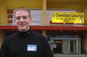Etwa 1.800 Gäste besuchten am vergangenen Wochenende die 5. Chemnitzer Linux-Tage auf dem Campus der Technischen Universität Chemnitz. Die Zahl der Gäste der größten Veranstaltung dieser Art in Deutschland nahm im Vergleich zum Vorjahr sogar um zehn Prozent zu. Berliner Fans des freien Betriebssystems Linux charterten in diesem Jahr sogar einen ganzen Reisebus. Andre Nicklas entschied sich für ein anderes Transportmittel. Der 25-jährige Wuppertaler fuhr 600 Kilometer per Fahrrad zum Linux-Tag. Mit kleinem Gepäck ging es 36 Stunden am Stück quer durch Deutschland. "Ich habe beim letzten Mal so tolle Erfahrungen gemacht und interessante Leute getroffen. Deshalb wollte ich unbedingt wiederkommen." Der ehemalige Chemnitzer Informatik-Student gehört zum so genannten NetBSD-Team, die wieder als Aussteller dabei waren.