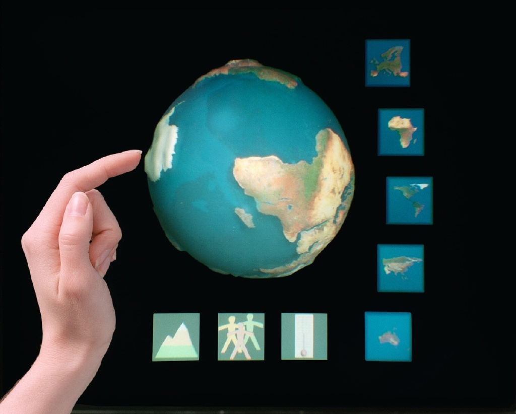 Ein weiterer Vorteil: Mit dem Display lassen sich virtuelle Modelle und reale Werkzeuge nahtlos miteinander verknüpfen. Dies nutzen die Forscher für Mixed Reality-Anwendungen. "Mixed Reality steht für die gleichberechtigte Verbindung zwischen Virtualität und Realität", erläutert Schenke. So kann zum Beispiel eine im computergenerierte Weltkugel einfach mit der Hand gedreht werden - ähnlich wie ein realer Globus. Ein Video Hand Tracker nimmt die Bewegung der Hand auf. Daraus berechnet der Computer, wie sich die virtuelle Erdkugel drehen muss. Ein Datenhandschuh wird nicht gebraucht, um die räumlichen Modelle zu bewegen oder zu bearbeiten. Zusätzlich kann der 3D-Arbeitsplatz mit einem herkömmlichen Kraft-Rückkopplungssystem ausgestattet werden. Dieses ermöglicht dem Nutzer, den Globus zu ertasten. Berührt der Betrachter die virtuelle Weltkugel, spürt er einen deutlichen Widerstand.