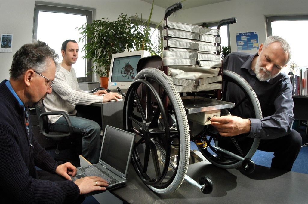 Der Nachweis der Funktionsfähigkeit dieser im Rahmen eines durch den Freistaat Sachsen geförderten Verbundprojektes entwickelten Technologie erfolgte an einem "intelligenten" Aktivrollstuhl mit elektrischer Leistungsunterstützung mittels batteriebetriebener Scheibenläufermotoren. Die Untersuchungen zu diesem Mensch-Maschine-Umwelt-System wurden fast vollständig simulationsunterstützt mit dem CAD-Werkzeug "Autodesk Inventor Dynamic Simulation Extension", der Mehrkörpersystem-Dynamiksimulation "alaska" und dem biomechanischen dreidimensionalen MKS-Menschmodell "DYNAMICUS" durchgeführt. Darüber hinaus wurde der Rollstuhl unter realen Bedingungen von einem Behinderten getestet.