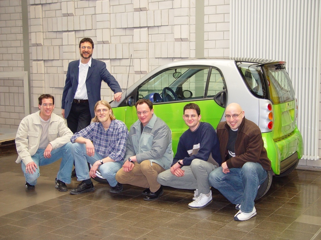 Zunächst muss der Smart allerdings noch deutlich "abgespeckt" werden, damit er sich auch wie im Straßenverkehr dynamisch bewegen kann. Alle schweren Komponenten, die nicht für den Simulationsbetrieb notwendig sind (z.B. der Antriebsstrang) werden ausgebaut. Die FH-Werkstätten und die Reutlinger Smart-Niederlassung helfen hierbei tatkräftig mit.