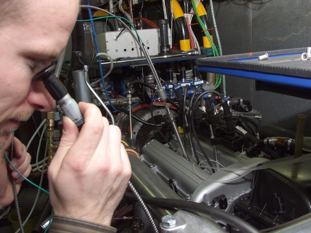 Stärker! Leiser! Sparsamer! Sauberer! Hersteller und Kunden richten an Verbrennungsmotoren heute hohe Ansprüche - um herauszufinden, ob und wie die Motoren diesen genügen können, hat das Institut für Kolbenmaschinen unter Leitung von Professor Dr. Ulrich Spicher ein neues optisches Verfahren zur Analyse der Verbrennung entwickelt: ein System zur Flammenvisualisierung, das auf der Lichtleitermesstechnik aufbaut. "Damit können wir Verbrauch und Emission optimieren", erklärt Professor Spicher. Schon jetzt haben Versuche am Institut ergeben, dass mit einem strahlgeführten Brennverfahren für Ottomotoren mit Direkteinspritzung der Kraftstoffverbrauch um 15 bis 30 Prozent gesenkt werden kann. Das strahlgeführte Verfahren unterscheidet sich von anderen, zum Beispiel dem wandgeführten, dadurch, dass die räumliche Nähe von Kraftstoffeinspritzer und Zündkerze eine höhere Abmagerungsfähigkeit bedingt: Der Kraftstoffanteil im Zylinder kann weiter reduziert werden und somit wird - bei gleicher Leistung - weniger Kraftstoff verbraucht.