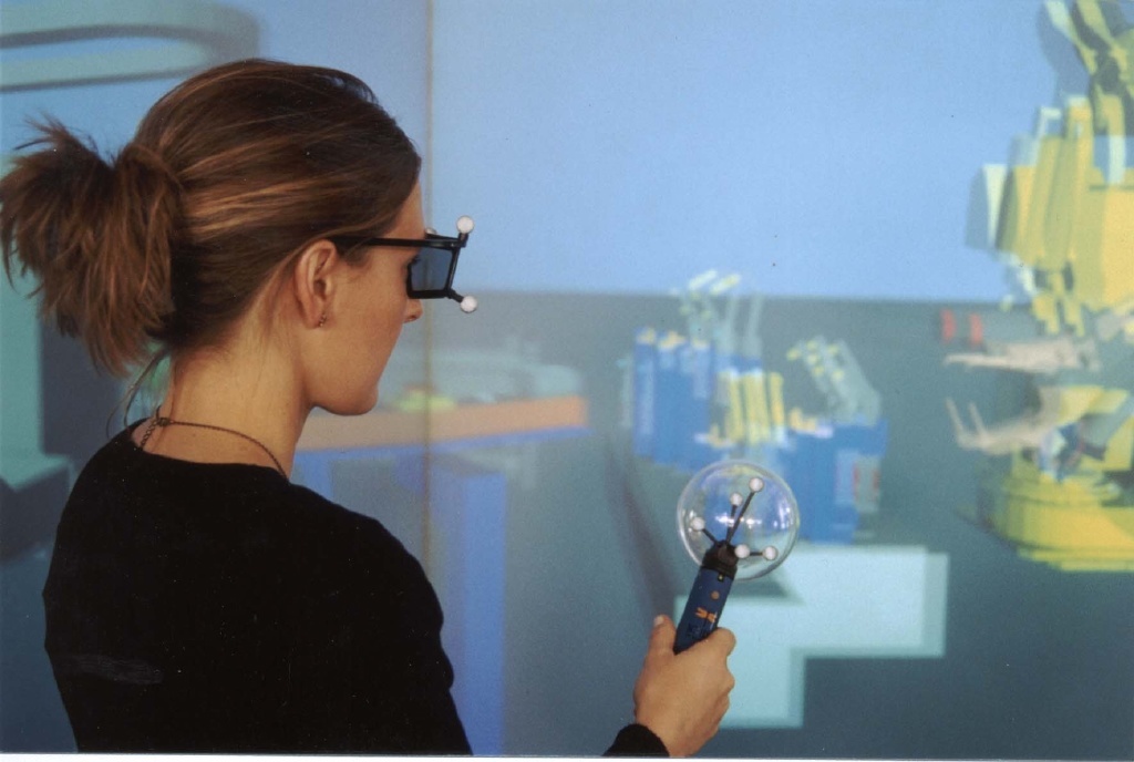 Was so spielerisch klingt, hat natürlich einen tieferen wissenschaftlichen Zweck. Prof. Dr. Schmid setzt das Immersive Projektionssystem für Forschungsaufgaben in der Telerobotik und dem Teleservice sowie der Lehre ein. In die projizierte Simulation einer virtuellen Welt können neben dem Bedienungspersonal noch weitere reale Objekte eingebunden werden. So kann beispielsweise ein realer Roboter in der immersiven Projektion virtuelle Objekte bewegen. Aber auch umgekehrt können virtuell erzeugte Roboter auf ihre Anwendungstauglichkeit in einer realen Umgebung erprobt werden. Die reale Welt wird hier mit praktischem Interesse von der virtuellen ergänzt. Daher spricht man in Wissenschaftskreisen auch von einer 'Augmented Reality'.