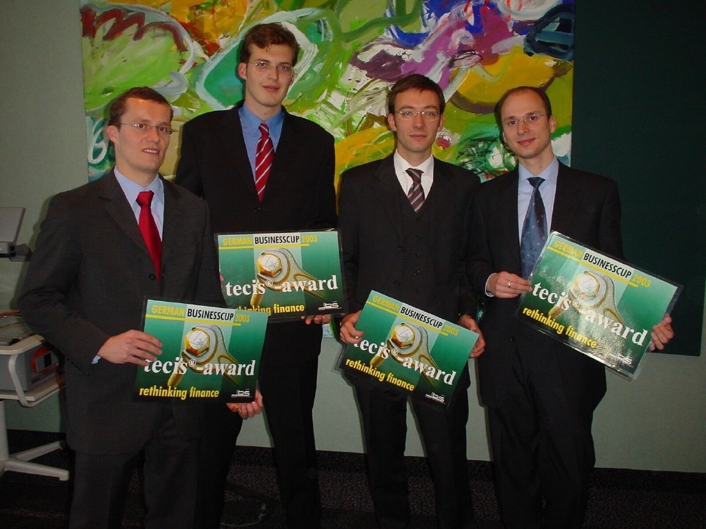 Dieses Jahr mussten sich die Studententeams in die Rolle eines Beratungsunternehmens begeben. Sie sollten Strategieempfehlung zum Franchisegedanken - der z. B. durch McDonalds bekannt ist - einer mittelständischen Bank vor Branchenexperten überzeugend präsentieren. Die Mitglieder der namhaften Jury waren von den verschiedenartigen Lösungsansätzen und ihren Präsentationen begeistert. Alle Strategien, so die Jury, zeichneten sich durch eine hervorragende Praxisorientierung aus. Als Sieger wurde das Team der Handelshochschule Leipzig gekürt. Thomas Kühnelt, Jan Miczaika, Matthias Sander und Alexander Strathmann konnten sich über den "Tecis Award" freuen, der jedem Studenten 500 Euro einbringt.