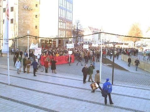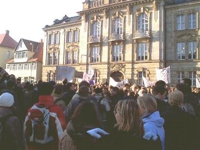 Bayreuth (UBT). Das hat diese Universitätsstadt seit 1976 noch nicht erlebt: Schätzungsweise 2000 der rund 9000 Bayreuther Studierenden gingen heute auf die Straße, um gegen die noch nicht endgültig konkretisierten Sparbeschlüsse der bayerischen Staatsregierung zu demonstrieren.