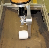 Für große Gussteile in geringen Stückzahlen wie Schiffsschraubenblätter oder Maschinenbette wird der Sand bislang manuell in die Formkästen gefüllt, verteilt und verdichtet. Diese aufwändigen Arbeiten übernimmt beim "ROBOTYPING" der Roboter. Der Sand kann komplett oder portionsweise in den Kasten geschüttet werden. Im ersten Fall verteilt der Roboter den Sand mit einer Spachtel. Im zweiten Fall häuft ein Dosierwerkzeug am Roboter den Sand entsprechend der Werkstückgeometrie auf. Ist der Sand grob verteilt, wird er mit einer Walze oder einem Stampfwerkzeug verdichtet. Walzwerkzeuge arbeiten dabei leiser als Stampfwerkzeuge, verschleißen nicht so schnell und sind weniger anfällig gegenüber Schwingungen. Die Bahnen, auf denen der Sand verdichtet wird, generiert eine eigens dafür entwickelte Software - form- und prozessorientiert, basierend auf den CAD-Daten des zu erstellenden Gussteils. "So werden beispielsweise stets Bahnen generiert, die bergauf zeigen, damit über der Walze herabrutschender Sand immer gleich angedrückt wird. Zudem sind die Bahnen so gelegt, dass bei möglichst geringen Prozesszeiten ein flächendeckendes Fahren stets garantiert ist", erklärt Timo Schäfer.