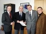Foto: Bernd Pohlmann-Eden (2.v.r.) ist zum neuen Professor an der Fakultät für Gesundheitswissenschaften ernannt worden. Das Foto zeigt weiterhin (v.l.) Kanzler Hans-Jürgen Simm, Rektor Dieter Timmermann und Dekan Klaus Hurrelmann.