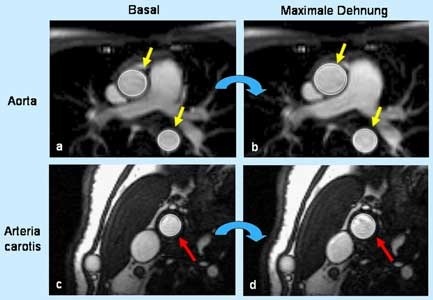 Die Magnetresonanz-Technik könnte zukünftig klinisch eine wichtige Rolle für die Abschätzung des Schlaganfall- oder Herzinfarktrisikos spielen. Im Bereich der Herz-Kreislauf-Forschung gibt sie interessante Einblicke in die Effekte neuer therapeutischer Ansätze gegen Arteriosklerose. Die Technik liefert exakte Bilder aus dem Inneren des Körpers, ohne dass hierfür ein Eingriff in den Organismus nötig ist. Sie arbeitet mit Magnetfeldern und kommt ohne Kontrastmittel und Röntgenstrahlen aus.