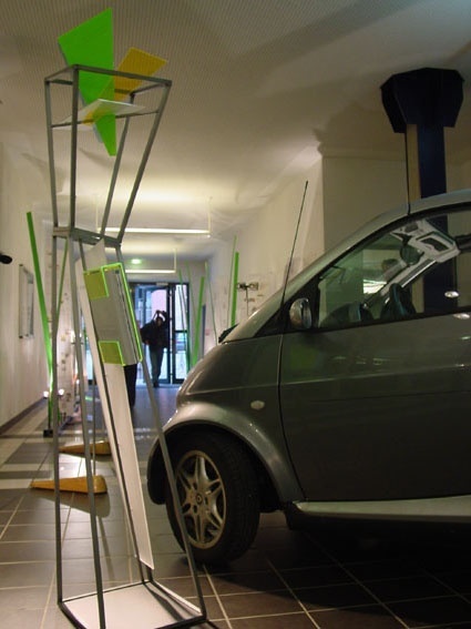 Eine Atmosphäre rund ums Auto zu schaffen, die dem Interessenten mehr vermittelt als die Wirkung des puren Produkts war die Aufgabe, der sich die Studierenden gestellt haben. Herausgekommen sind Präsentationsmodule wie der "Sternfänger", der formschöne Details heranzoomt oder die "Kuben", auf denen ein Geländewagen ganz anders zur Geltung kommt als auf einer planen Fläche.
