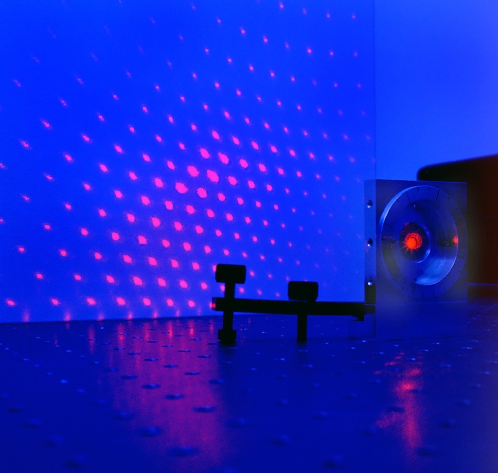 Blaugrünes Laserlicht flammt auf, die Show beginnt: Wie in einem stillen Ballett ordnen sich langkettige Makromoleküle zu einem komplizierten Muster. Sie türmen sich zu Mikrometer hohen Bergen auf, zwischen denen sich ähnlich tiefe Schluchten öffnen. Als das Licht verlischt, erstarren die Ketten. Auf einer Fläche von einigen Mikrometern hat sich ein geordnetes und stabiles Relief gebildet. Das winzige Gitter kann als Bauteil in der Optik eingesetzt werden. Je nach Strukturierung streut es Lichtstrahlen, teilt oder lenkt sie. Der Clou: Die Struktur lässt sich allein durch das Laserlicht maßschneidern.