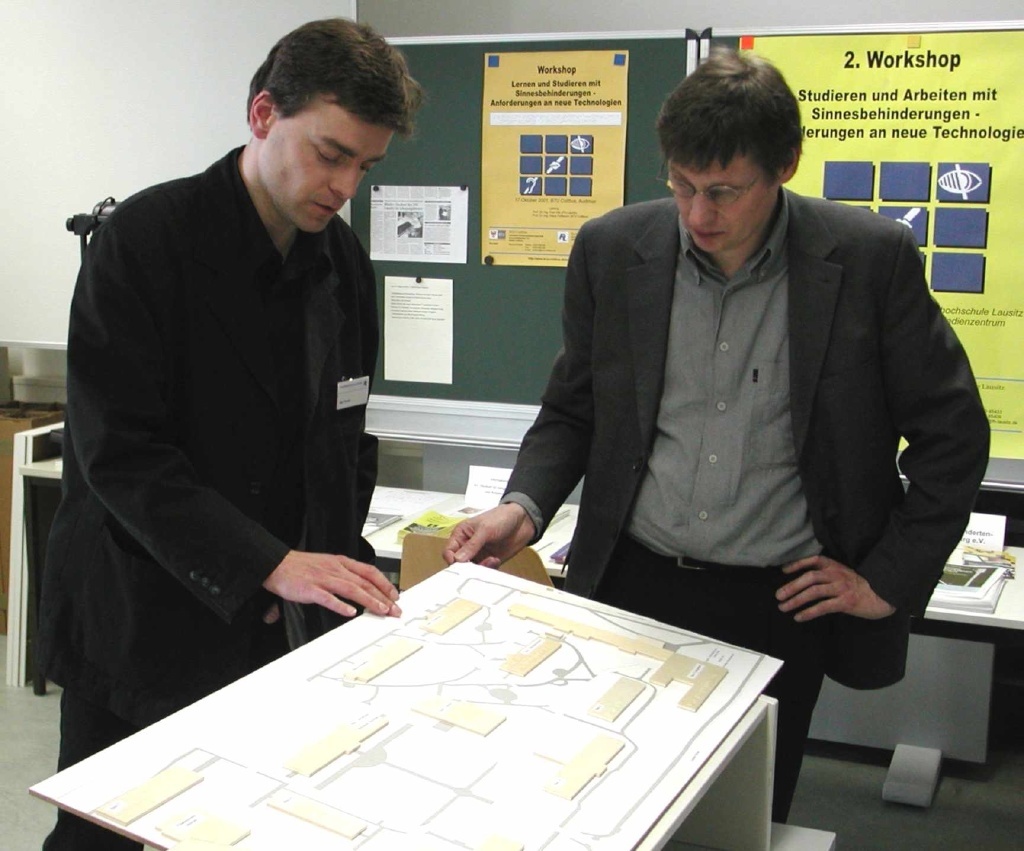 Im Rahmen einer Projektarbeit wurde an der Fachhochschule Lausitz ein tastbarer Lageplan des Studienortes Cottbus für blinde Studierende geschaffen.