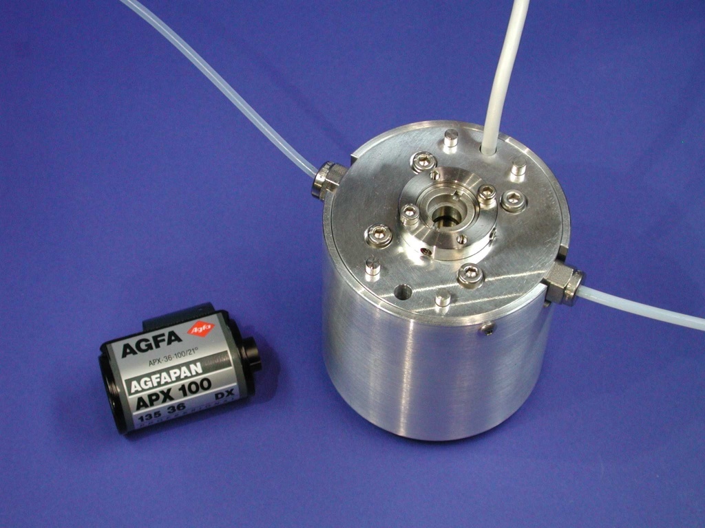 Die Sensoreinheit ist kompakt und kostengünstig aufgebaut. Strahlenquelle, Infrarotdetektor und die optische Strahlführung sind auf eine Durchflusszelle abgestimmt und in einem System integriert. Angepasst an den in der Maschine zur Verfügung stehenden Raum beträgt die Baugröße des Gesamtsystems nur 70 mm x 70 mm.